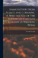 Immigration From Alsace and Lorraine. A Brief Sketch of the History of Castro's Colony in Western Texas