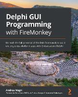 Create modern yet effective multi-platform applications by building interactive UIs following a single codebase approach to boost productivity Key Features Delve into the FireMonkey framework and explore its powerful capabilities Enhance the user experience by using various technologies included in Delphi and FMX Boost developer productivity through the cross-platform capabilities enabled by the framework Book DescriptionFireMonkey (FMX) is a cross-platform application framework that allows developers to create exciting user interfaces and deliver applications on multiple operating systems (OS). This book will help you learn visual programming with Delphi and FMX. Starting with an overview of the FMX framework, including a general discussion of the underlying philosophy and approach, you’ll then move on to the fundamentals and architectural details of FMX. You’ll also cover a significant comparison between Delphi and the Visual Component Library (VCL). Next, you’ll focus on the main FMX components, data access/data binding, and style concepts, in addition to understanding how to deliver visually responsive UIs. To address modern application development, the book takes you through topics such as animations and effects, and provides you with a general introduction to parallel programming, specifically targeting UI-related aspects, including application responsiveness. Later, you’ll explore the most important cross-platform services in the FMX framework, which are essential for delivering your application on multiple platforms while retaining the single codebase approach. Finally, you’ll learn about FMX’s built-in 3D functionalities. By the end of this book, you’ll be familiar with the FMX framework and be able to build effective cross-platform apps. What you will learn Explore FMX’s fundamental components with a brief comparison to VCL Achieve visual responsiveness through alignment capabilities and layout components Enrich the user experience with the help of transitions and visual animations Get to grips with data access and visual data binding Build exciting and responsive UIs for desktop and mobile platforms Understand the importance of responsive applications using parallel programming Create visual continuity through your applications with TFrameStand and TFormStand Explore the 3D functionalities offered by FMX Who this book is forThis book is for Delphi developers who are looking to discover the full potential of the FireMonkey framework in order to build interactive cross-platform GUI applications and achieve an optimal UI/UX. Basic familiarity with Delphi programming and the VCL will be beneficial but not mandatory.