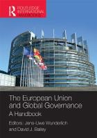 The role of the European Union in global politics has been of growing interest over the past decade. The EU is a key player in global institutions such as the World Trade Organization (WTO) and NATO. It continues to construct an emerging identity and project its values and interests throughout contemporary international relations. The capacity of the EU to both formulate and realise its goals, however, remains contested. Some scholars claim the EU’s `soft power’ attitude rivals that of the USA’s `hard power’ approach to international relations. Others view the EU as insufficiently able to produce a co-ordinated position to project upon global politics. Regardless of the position taken within this debate, the EU’s relationship with its external partners has an increasingly important impact upon economic, political and security concerns on an international level. Trade negotiations, military interventions, democracy promotion, international development and responses to the global economic crisis have all witnessed the EU playing a central role. This has seen the EU become both a major force in contemporary institutions of global governance and a template for supranational governance that might influence other attempts to construct regional and global institutions. This volume brings together a collection of leading EU scholars to provide a state-of-the-art overview covering these and other debates relating to the EU’s role in contemporary global governance. The Handbook is divided into four main sections: Part I: European studies and global governance – provides an overview and critical assessment of the leading theoretical approaches through which the EU’s role in global governance has been addressed within the literature. Part II: Institutions – examines the role played by the key EU institutions in pursuing a role for the EU in contemporary international relations. Part III: Policy and issue areas – explores developments within particular policy sectors, assessing the different impact that the EU has had in different issue areas, including foreign and security policy, environmental policy, common commercial policy, the Common Agricultural Policy, development policy, accession policy, the Neighbourhood Policy and conflict transformation. Part IV: The global multilevel governance complex and the EU – focuses on the relationship between the EU and the institutions, regions and countries with which it forms a global multilevel governance complex, including chapters on the EU’s relationship with the WTO, United Nations, East Asia, Africa and the USA. The editors are Jens-Uwe Wunderlich (Aston University) and David J. Bailey (University of Birmingham). Jens-Uwe Wunderlich’s research and teaching focuses on international relations theory, European integration and globalization and on comparative regionalism; he has recently published Regionalism, Globalisation and International Order–Europe and Southeast Asia (Ashgate) and A Dictionary of Globalization (Routledge, 2007). David Bailey has published on trends in European governance in the Journal of European Public Policy, Comparative European Politics, and Journal of European Social Policy.